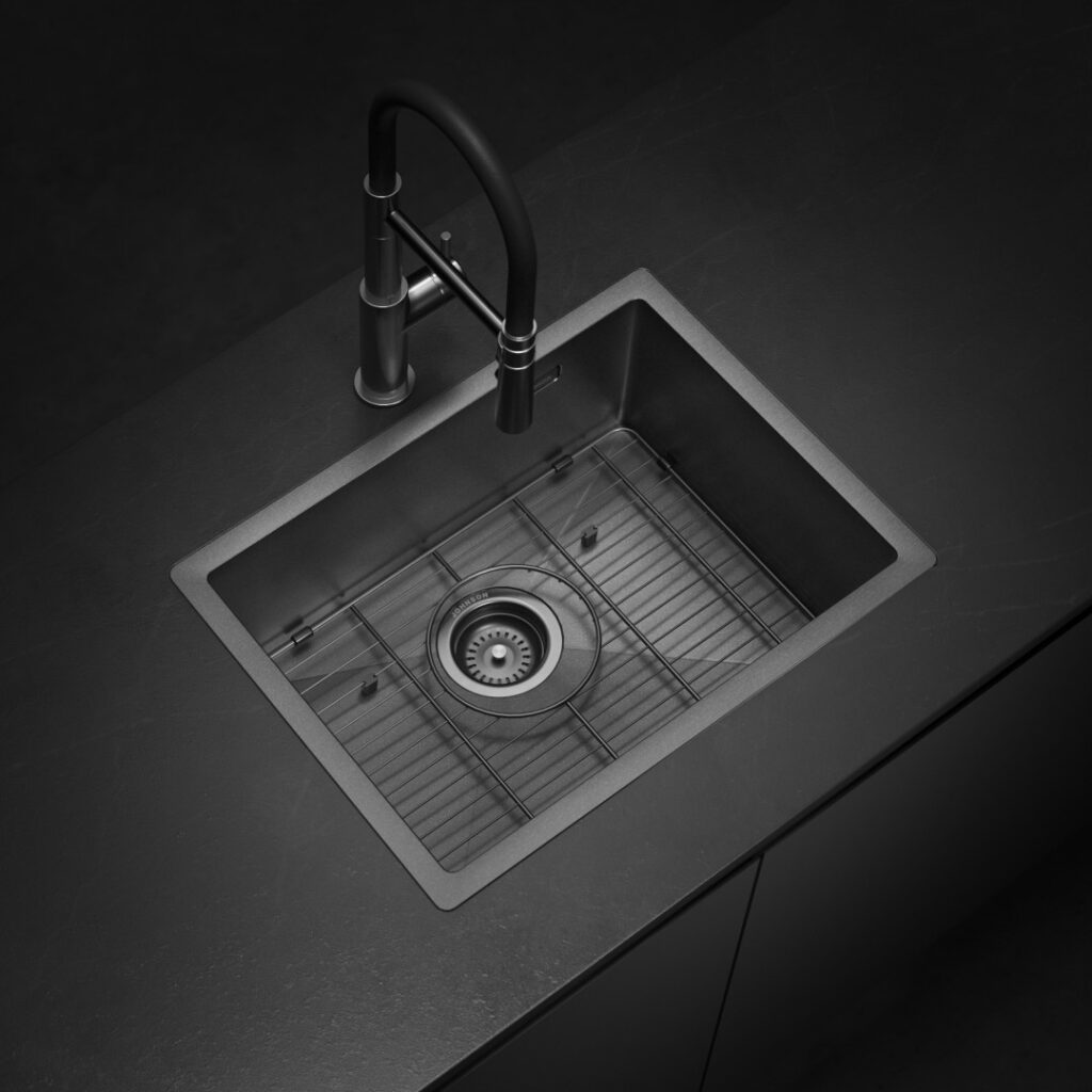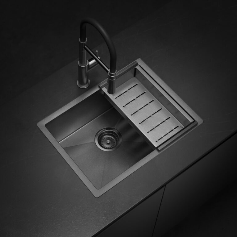 La pileta Signature Enkel 55 con acabado Gun Black Nano PVD combina elegancia y resistencia. Ideal para cocinas modernas, su innovador recubrimiento ofrece una durabilidad superior y fácil limpieza.