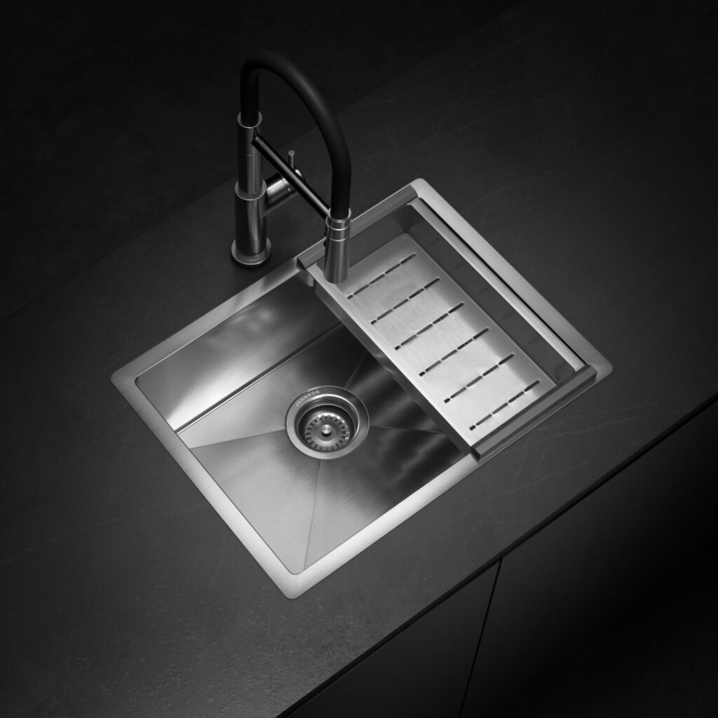 Compacta y versátil, esta pileta de acero inoxidable 304 con acabado satinado es perfecta para espacios reducidos. Su diseño elegante y funcional garantiza durabilidad y fácil mantenimiento.
