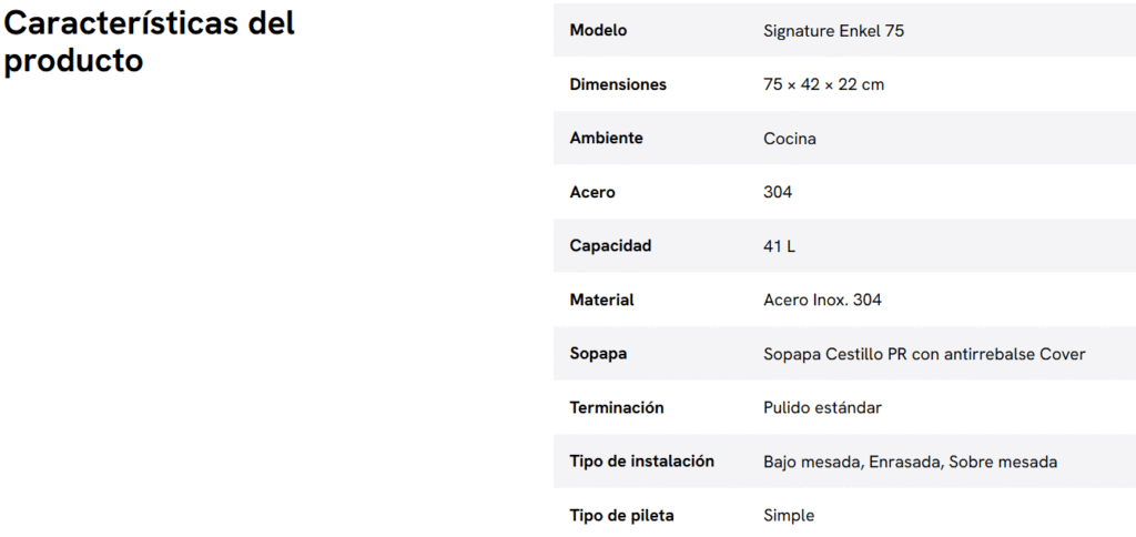 Con mayor capacidad volumétrica, el modelo Signature Enkel 75 con acabado satinado es ideal para quienes necesitan más espacio sin comprometer el estilo. Fabricada en acero inoxidable 304, asegura durabilidad y resistencia.