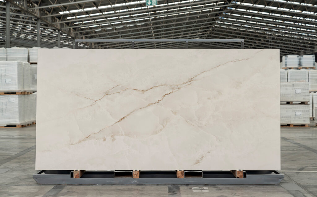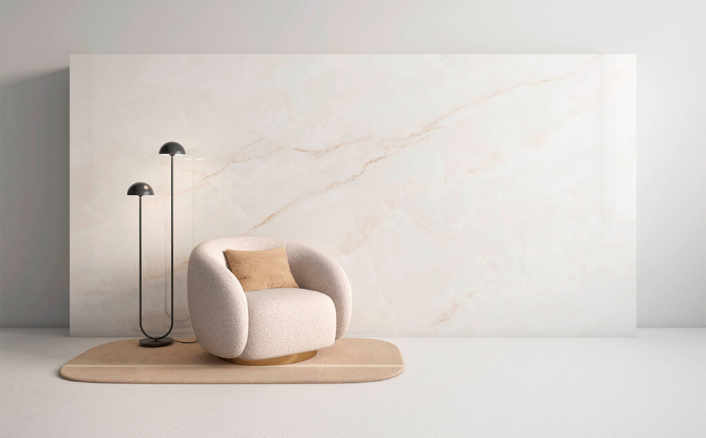 Inspirado en la piedra ónyx, Onyx White resalta por su fondo claro capaz de inegrarse en cualquier estilo de decoración. Sus suaves vetas doradas realzan su distinción.