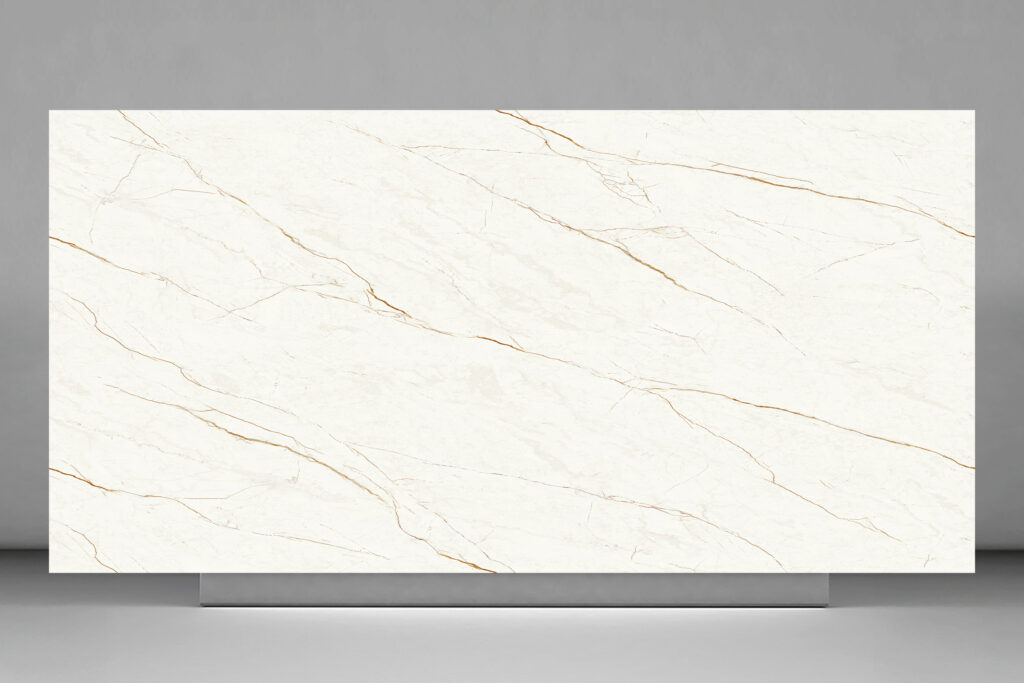 Una superficie elegante y luminosa que combina un fondo marfil suave con delicadas vetas doradas, aportando distinción y calidez a cualquier proyecto. Su terminación 3D —exclusiva en Argentina— ofrece una textura levemente rugosa que realza el realismo de la piedra natural y su presencia en espacios de alto diseño. Ideal para mesadas, revestimientos y aplicaciones que buscan sofisticación y carácter. Disponible en terminación mate